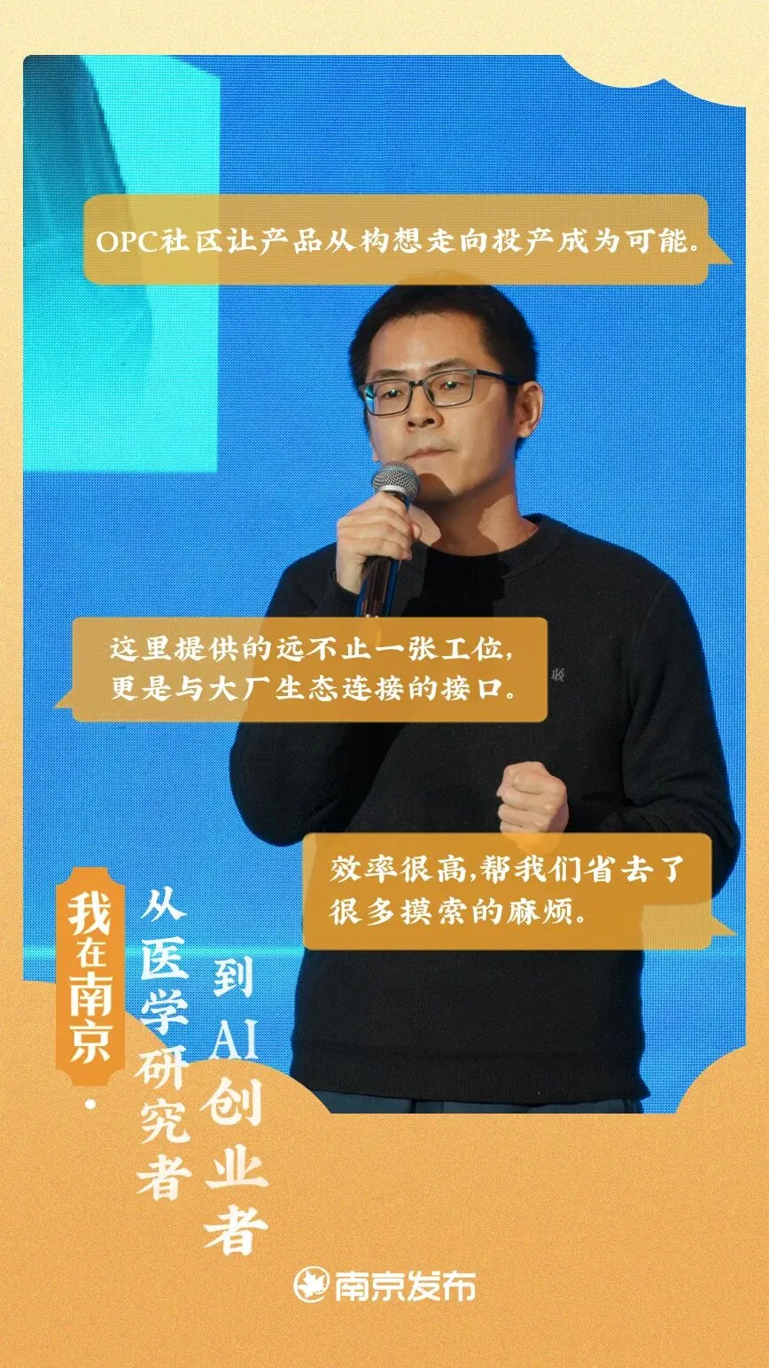 ○“OPC是AI时代非常好的创业形态,它让有想法的年轻人能够以更低成本、更快速度把创意变成产品。”陈亚伟表示,“对于我来说,希望未来能与阿里健康这样的生态平台对接,也期待能在建邺区的社区医院先行试点。”