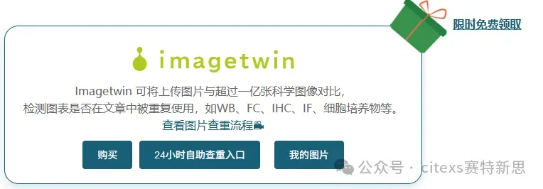 citexs赛特新思科研网站作为imagetwin的合作方,上新imagetwin图片查重板块,为广大科研人员提供图片查重服务,共同维护学术的纯洁性,推动学术界的健康发展!24小时自助查重,超高性价比!!!