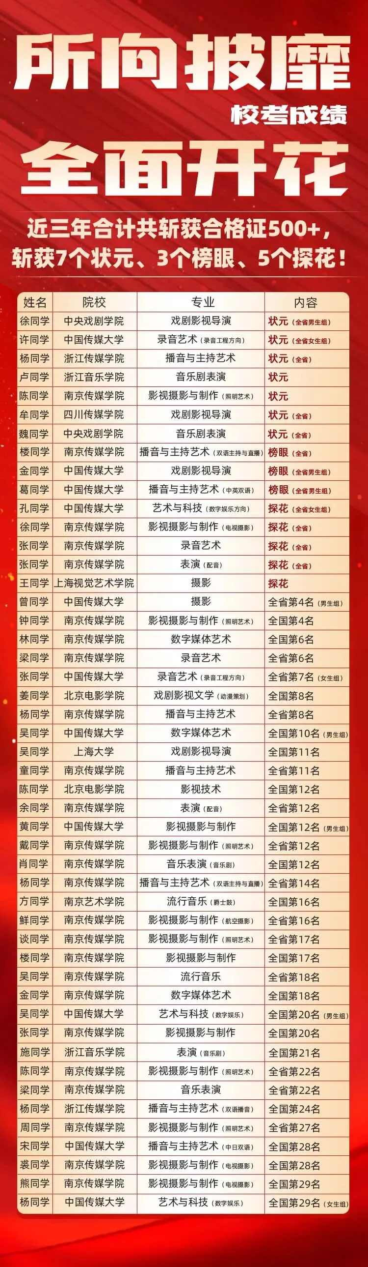 北电表演拿下1证!中传播音拿下5证!浙传播音拿下15证!