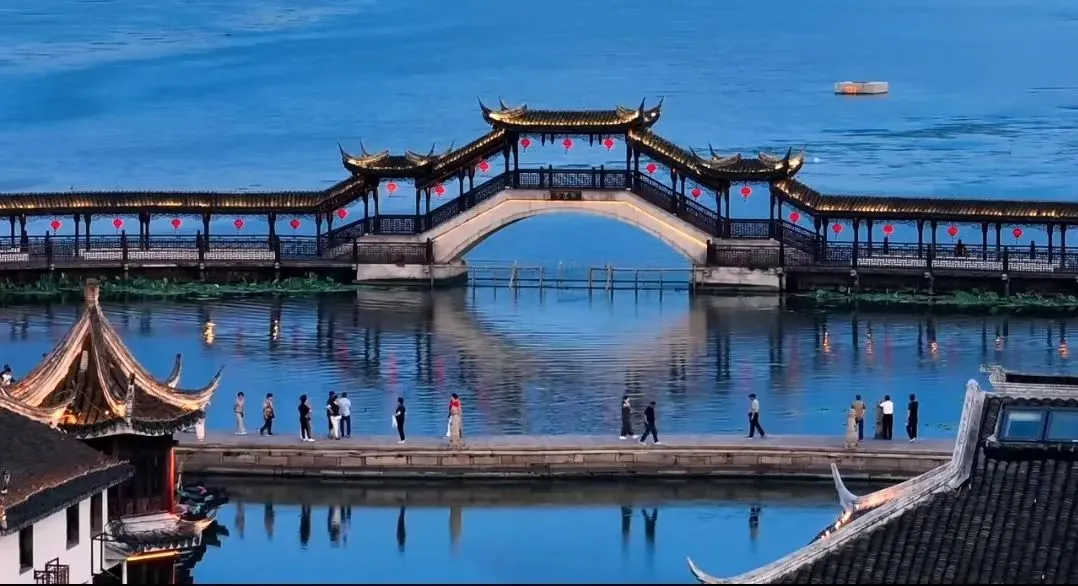 水巷蜿蜒如碧带轻绕,青瓦粉墙倒映粼粼波光。古桥卧波,石阶缀岸,橹声欸乃里摇曳着千年风雅。晨雾漫过文昌阁飞檐,暮色染透十眼长桥,每一帧都是水墨江南的灵韵天成。