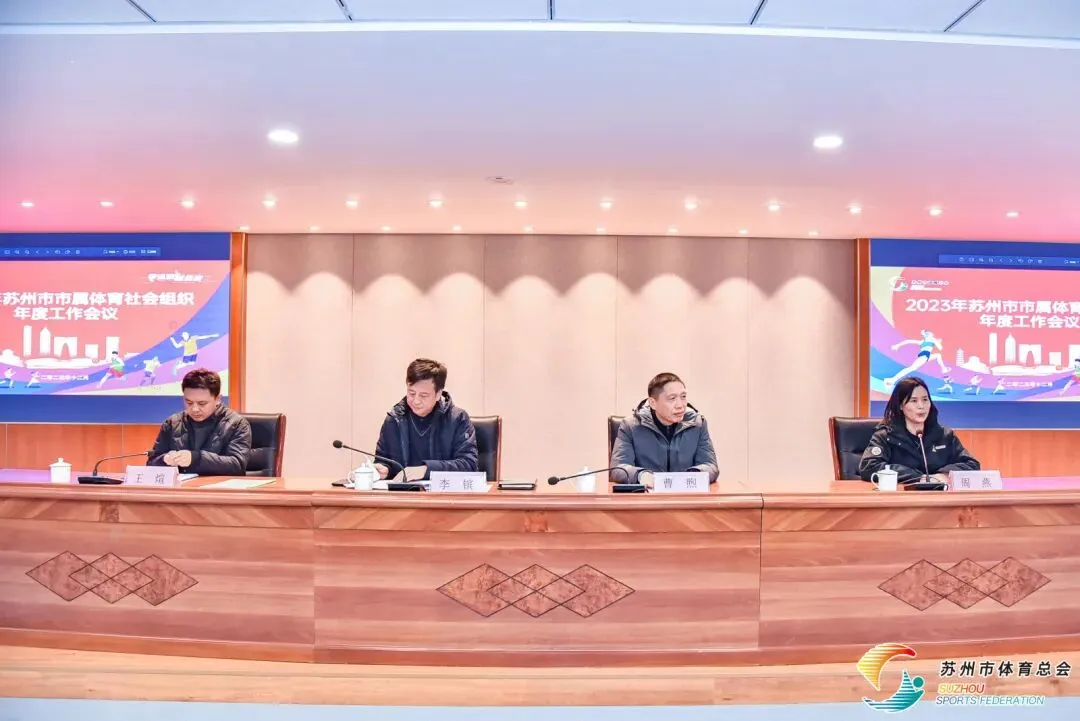 又到一年岁末时,也是新程扬帆际,苏州市体育总会召开2023年市属体育社会组织年度工作会议,总结经验,筹划未来。苏州市体育局副局长、市体育总会副主席李镔,苏州市体育局四级调研员曹煦等领导和嘉宾出席会议,苏州市属体育协会、体育俱乐部负责人参加会议。