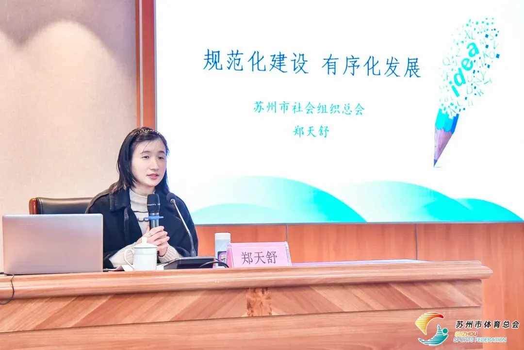 会后,苏州市体育总会还召开了苏州市属体育社会组织负责人业务培训会,邀请到了苏州市市立医院副院长郝跃峰、苏州市社会组织总会秘书长郑天舒、苏州市体育信息中心数字化发展部副部长缪文东就运动健康工作业务、社会组织规范化建设、社会组织信息化工作等,为各市属体育社会组织的负责人集体“充电”,促进我市体育社会组织规范有序发展、释放活力,在全民健身工作中发挥更大作用。