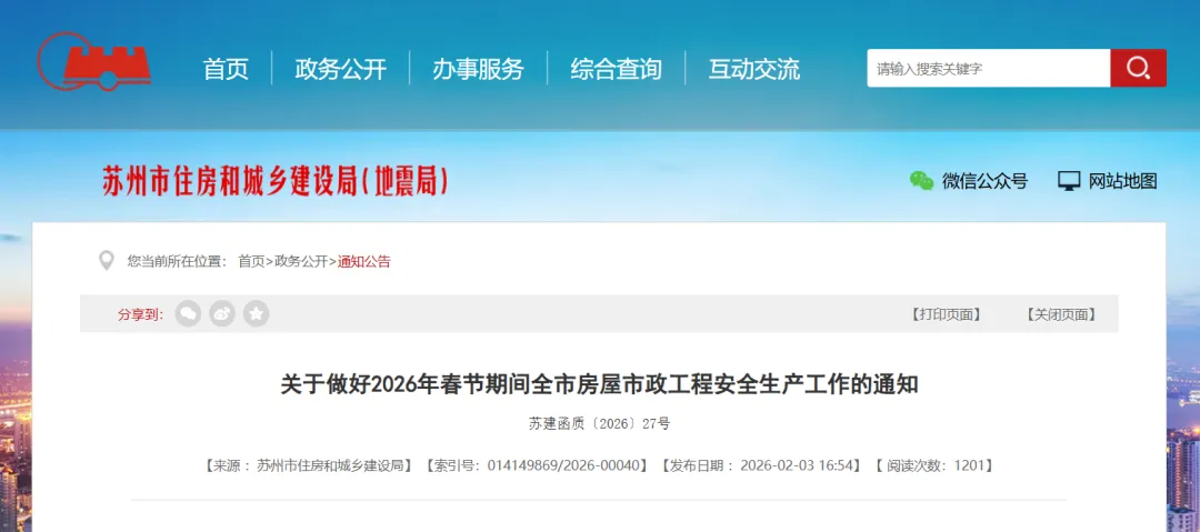 为切实做好2026年春节期间我市房屋市政工程安全生产工作,有效防范和遏制安全生产事故发生,现将有关事项通知如下: