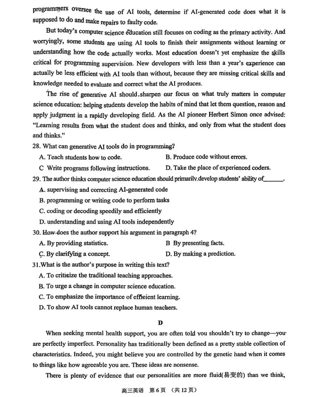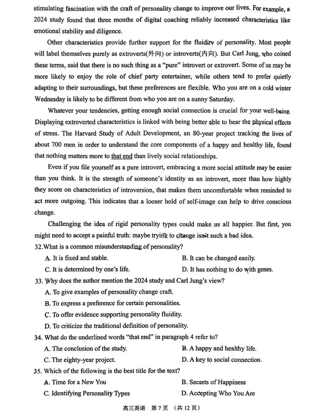 涵盖 AI 与教育、人格可塑性、健康旅游、个人成长等热点话题,注重考查学生的思辨能力和文化意识。