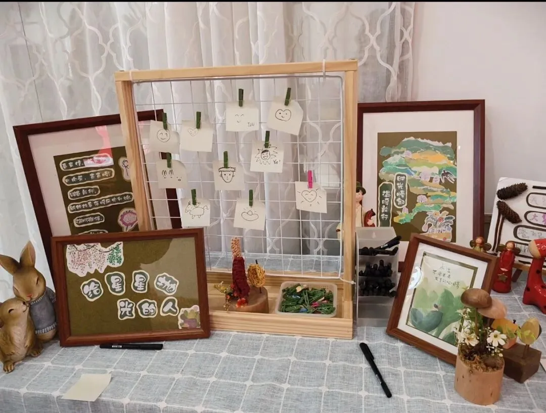 老师们将画作夹在“童心检票处”的网格架上,完成一场“无字签到”。