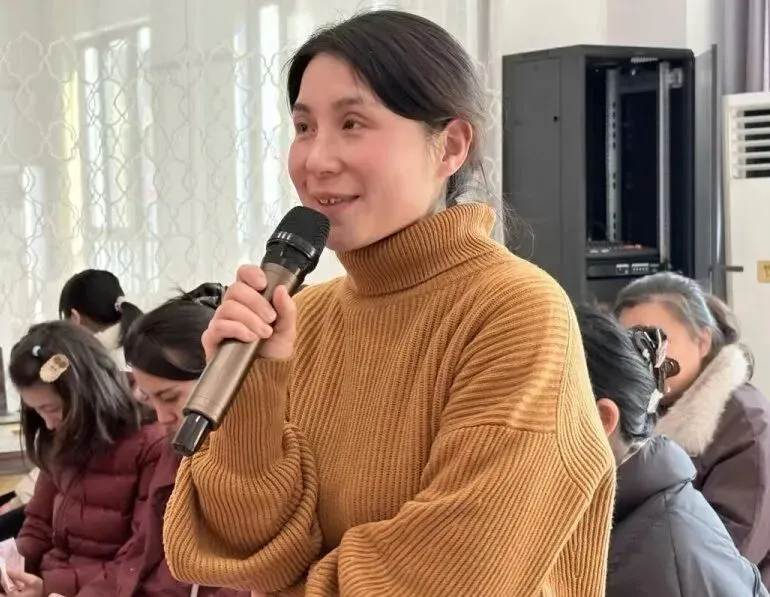 阅读后,老师们主动站到台前,分享这份意外的感动。