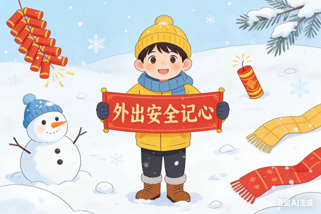 寒假外出旅游,请看管好孩子和随身物品,谨防意外发生。景点游玩时遵守规定,听从工作人员指挥安排。假期严禁孩子去未经开发和无人看管的河湖冰面滑冰玩耍。教育孩子外出一定要告知家长,去哪里、和谁去、何时回等,严禁私自相邀外出玩耍。同时,教育孩子外出增强安全防范意识和自我保护意识,不与陌生人接触,遇到危险可大声呼救,寻求周围人的帮助等。