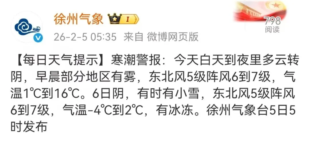 据徐州气象微博发布的
