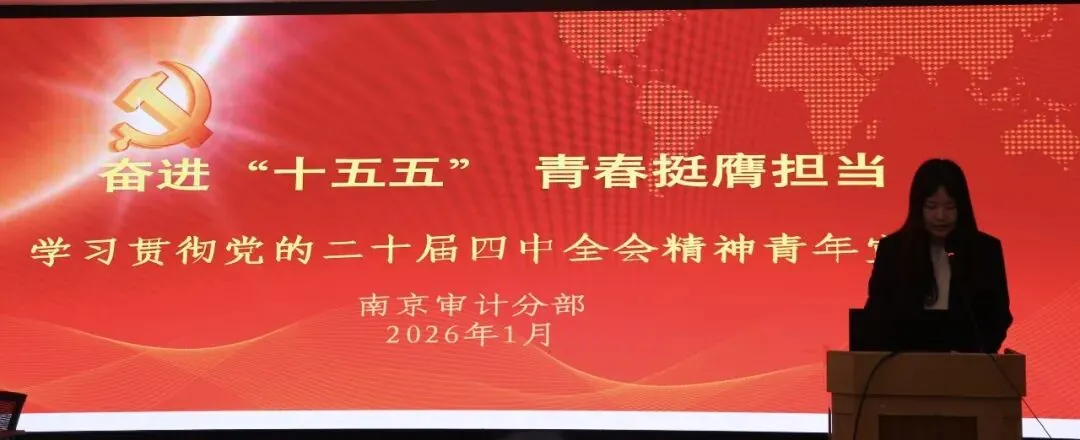 为深入学习贯彻党的二十届四中全会精神,南京审计分部围绕“十五五”规划,结合审计实际,组织开展了团干领学及青年员工代表宣讲等主题活动,推动全会精神在青年干部中入脑入心、走深走实,激发干事创业的内生动力。
