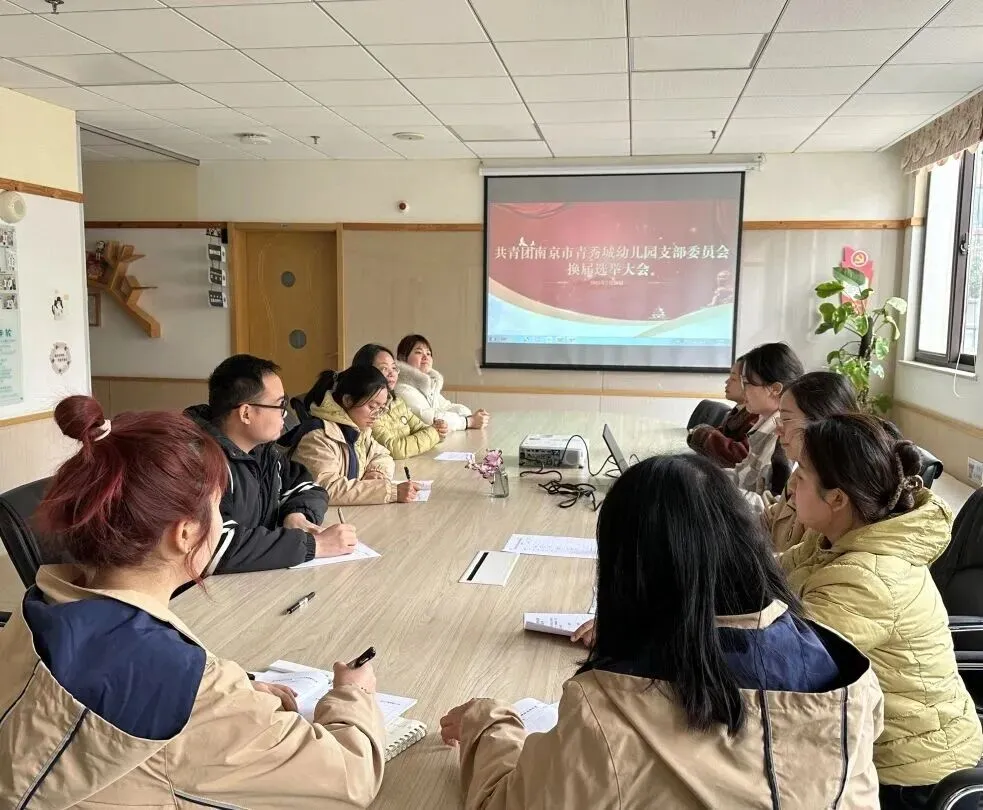 2月20日,共青团南京市青秀城幼儿园支部委员会换届选举大会顺利召开。尚靖茹、董黎明、湛清馨、刘素洁当选第二届支部委员。新班子将传承优良传统,贡献青春力量。