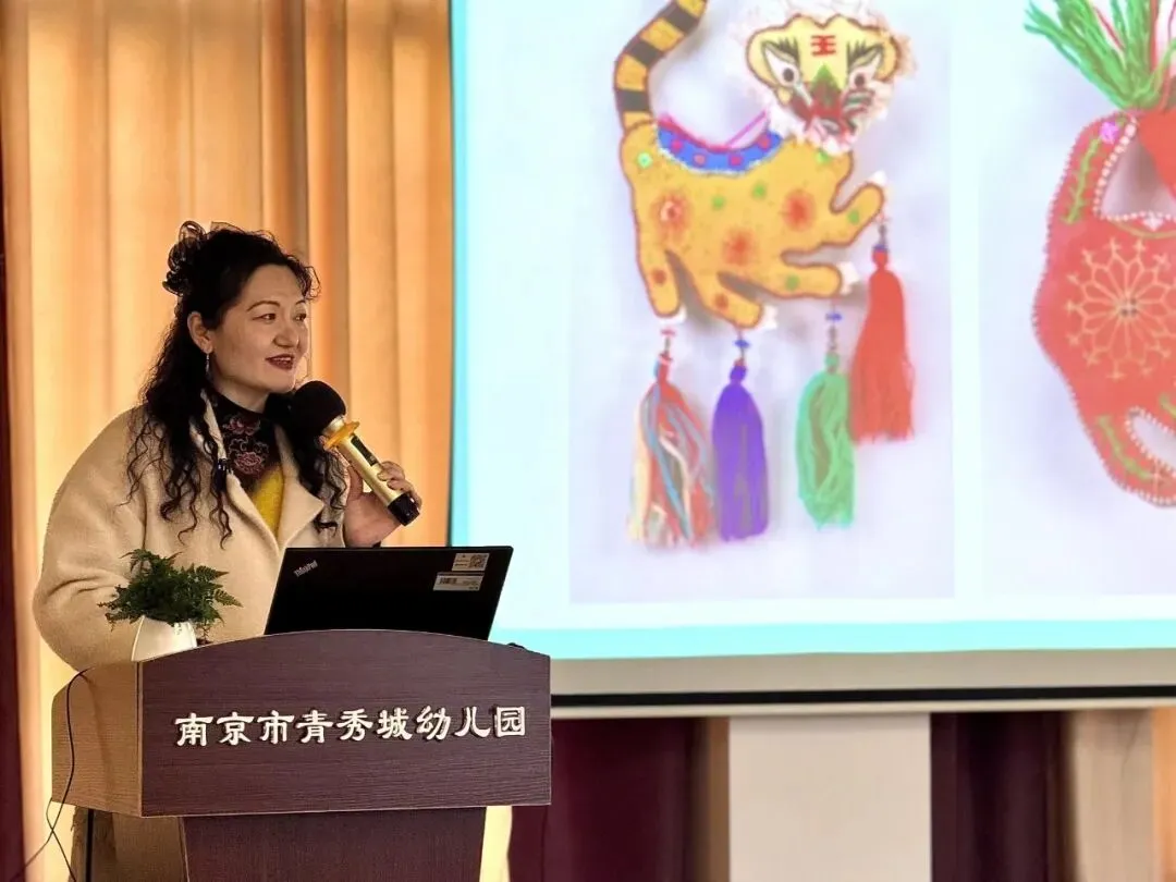 11月28日,幼儿园开展第十五期“青秀丽谈”活动,邀请南京市博物总馆刘媛之馆长主讲。刘馆长以文物中的儿童形象为切入点,分享传统文化中的审美意趣、教育智慧及儿童形象的文化价值,给出文物与儿童教育结合的实践思路,助力教师将传统之美融入日常教学。