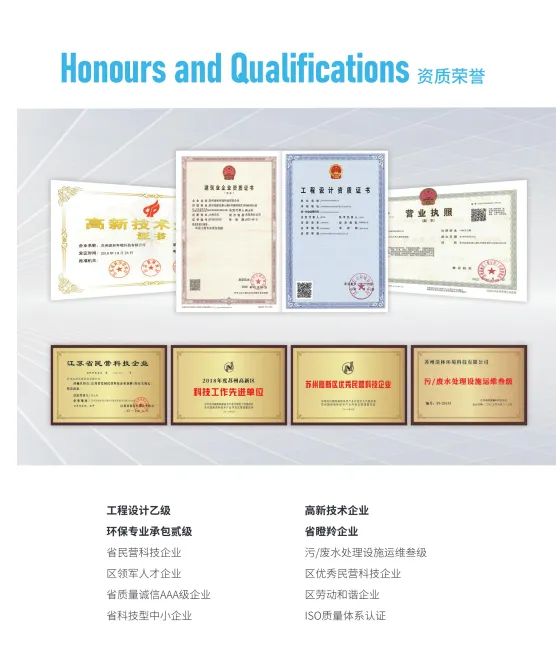 作为国家高新技术企业、科技型中小企业、省瞪羚企业,淡林环境已获得38余项专利授权,涵盖废水处理工艺、设备结构及资源化技术等。公司通过ISO9001质量管理体系认证,并持有环保工程专业承包贰级资质、环境污染治理设施运营资质等9项行业证书。此外,淡林环境被认定为“江苏省民营科技企业”“劳动关系和谐企业”,并担任太湖群鹰会创始会员,参与制定《光伏电池生产废水处理及回用技术规程》等团体标准,推动行业技术升级。