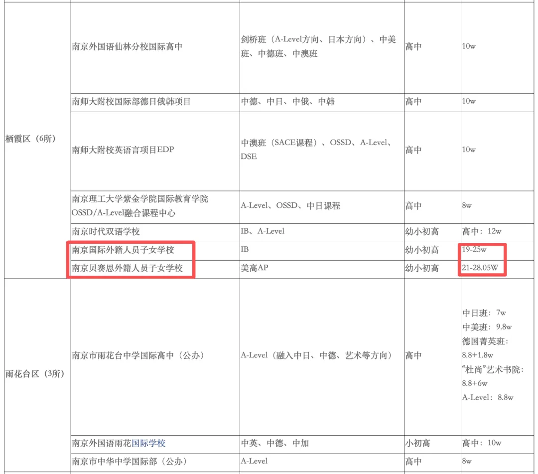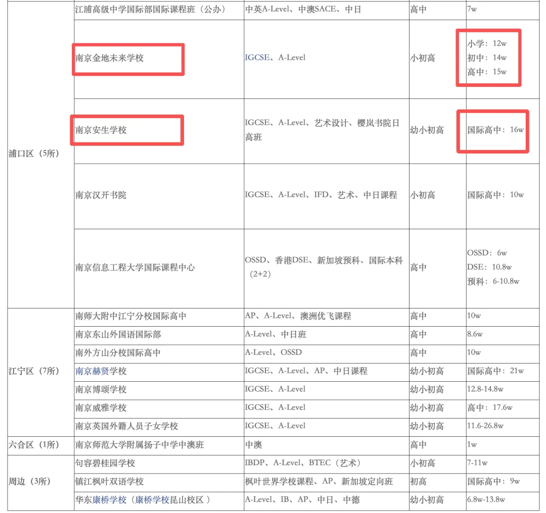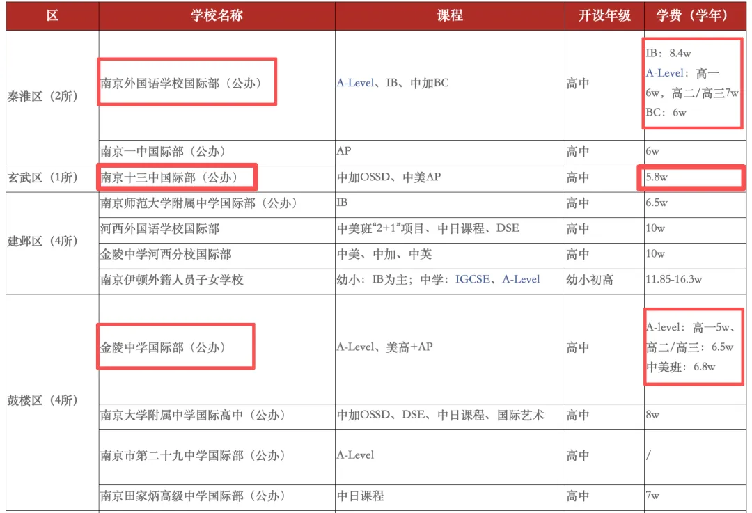 然而,“丰富”的背后是巨大的差异,最直观的体现便是学费。根据一份涵盖南京主要国际化学校的学费清单,各校每年的学费区间从约 5.8万元 到 28.05万元 不等,跨度极大。