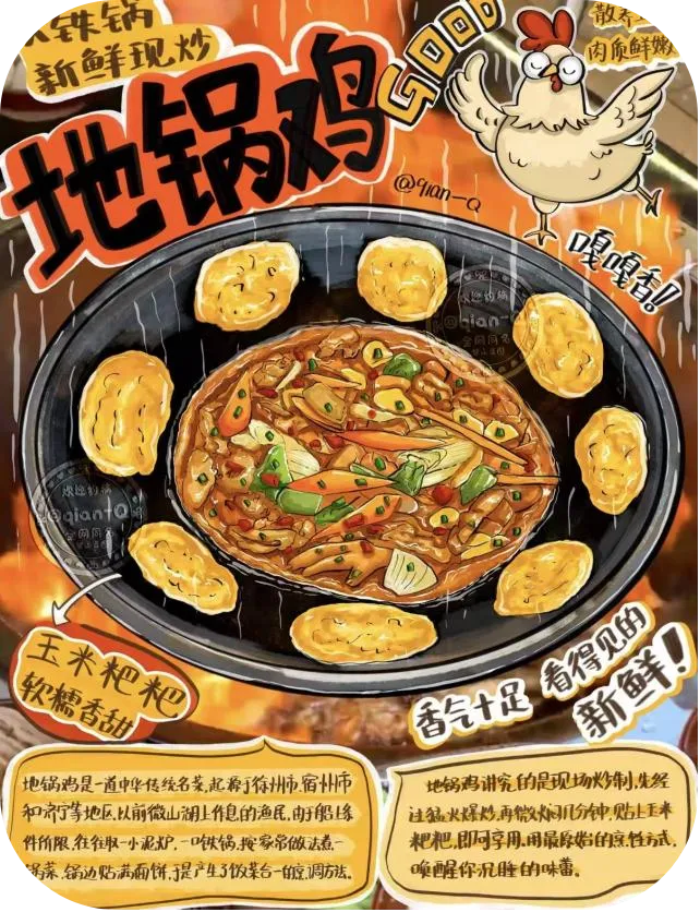 选择地锅鸡、饣它汤、把子肉等一道徐州名菜,通过查阅资料、采访长辈,探究它的历史、故事和独特制作方法。完成一份图文并茂的《徐州名菜研究报告》手册或海报。