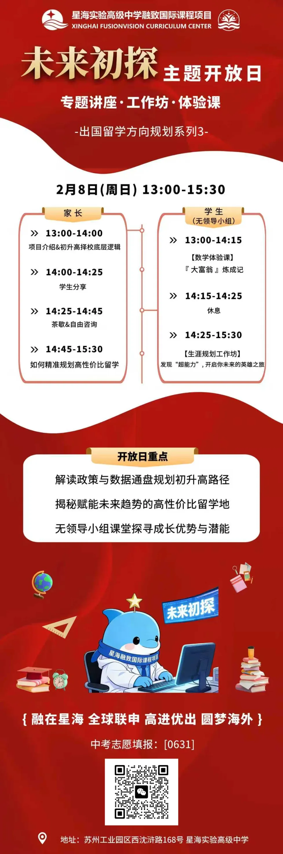 作为深耕苏州国际教育的新航道,今天特意给大家划重点:这场开放日把 “娃体验 + 家长规划” 都安排得明明白白