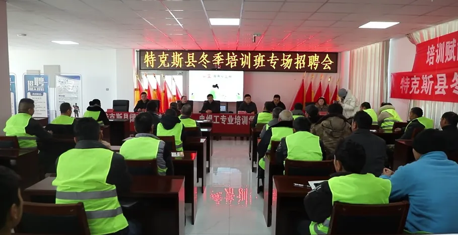 在江苏援伊・南京(江宁)工作组大力支持下,近日,特克斯县阔克铁热克柯尔克孜族乡玛热勒塔斯村冬季技能培训暨专场招聘会顺利举办。此次活动精准搭建起企业与技能培训学员的对接桥梁,将暖心就业服务送到牧民家门口,切实打通了劳动力供需两端的“最后一公里”。