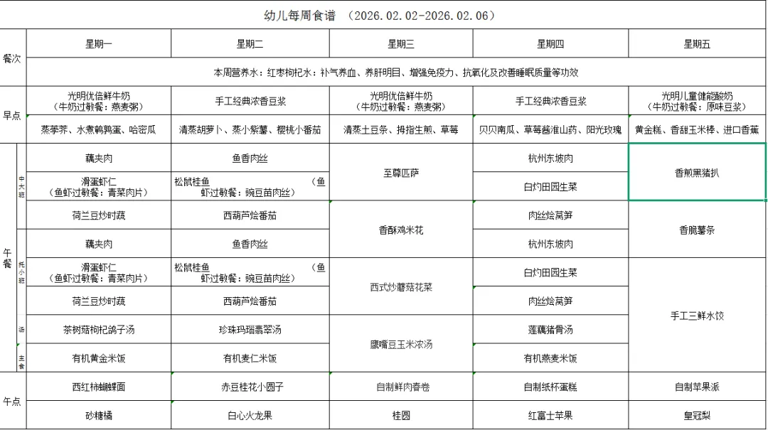 苏州道雅蒙氏幼儿园食谱2026.02.02-2026.02.06