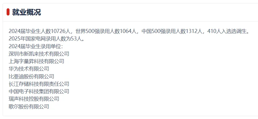 就业方面,南大毕业生认可度极高。2024届毕业生人数10726人,世界500强录用人数1064人,中国500强录用人数1312人,410人入选选调生。2025年国家电网录用人数为53人。