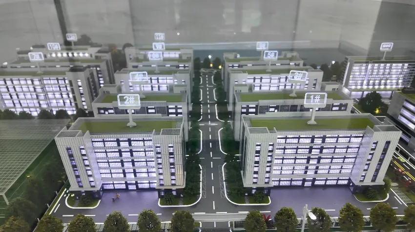 高标准、高效率推动项目建设,溢丰华创全力以赴抢抓工期进度。项目所在地——六合经济开发区更是全程“陪跑”,提供“多对一”全过程服务,在土地、环评等关键手续上高效推进,创造了“签约三个月即正式开工”的六合速度。同时,协调解决了周边道路、电力、蒸汽等核心配套问题。政企携手、园企联动,项目建设蹄疾步稳。经过约一年半时间的施工,项目A地块已有6栋厂房完成主体封顶,B地块已施工至二层主体结构。