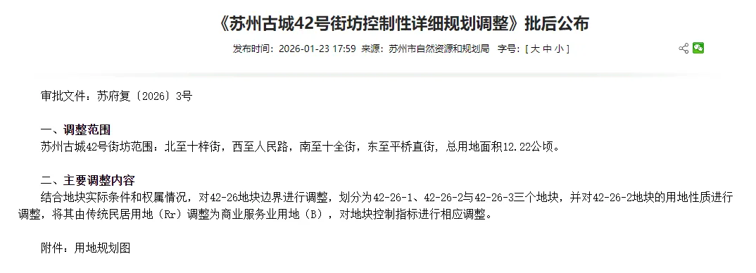 苏州古城42号街坊范围:北至十梓街,西至人民路,南至十全街,东至平桥直街, 总用地面积12.22公顷。