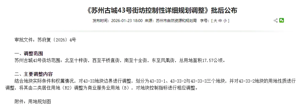 苏州古城43号街坊范围:北至十梓街,西至平桥直街,南至十全街,东至凤凰街,总用地面积17.57公顷。