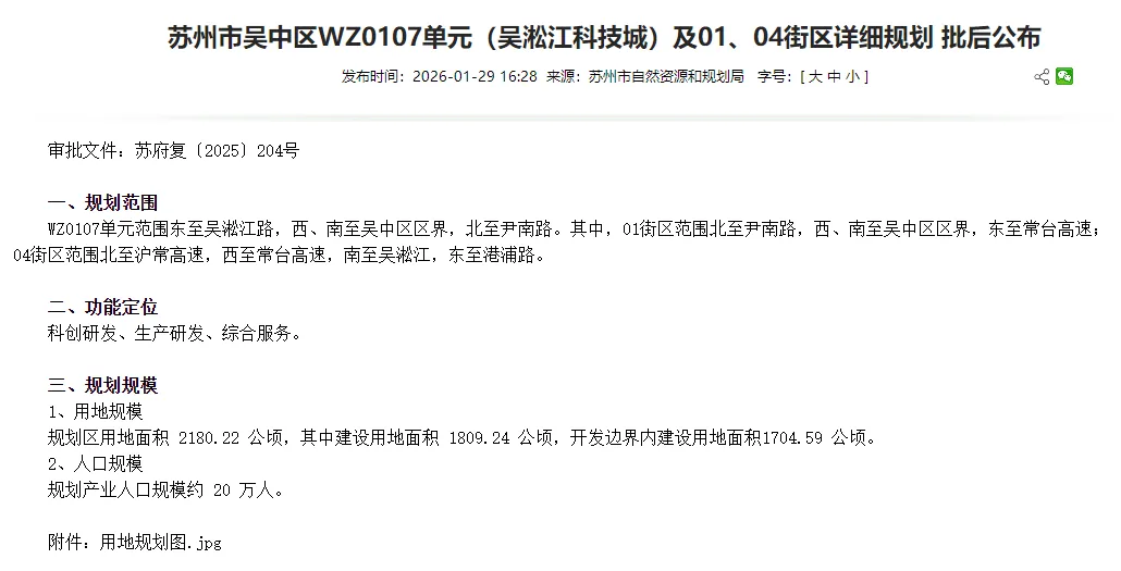WZ0107单元范围东至吴淞江路,西、南至吴中区区界,北至尹南路。其中,01街区范围北至尹南路,西、南至吴中区区界,东至常台高速;04街区范围北至沪常高速,西至常台高速,南至吴淞江,东至港浦路。