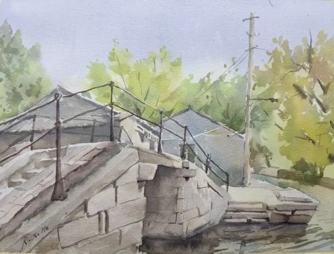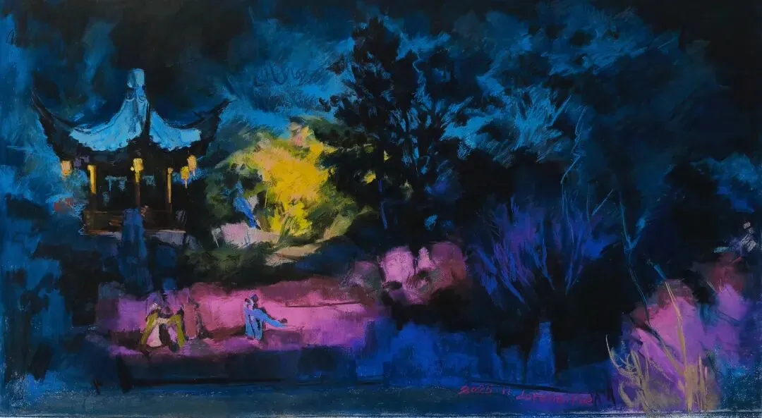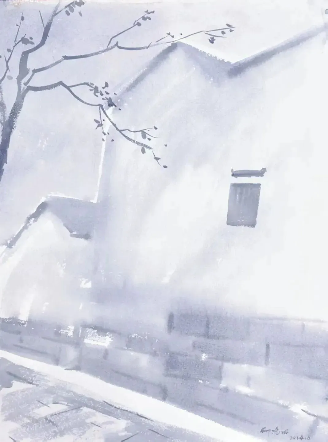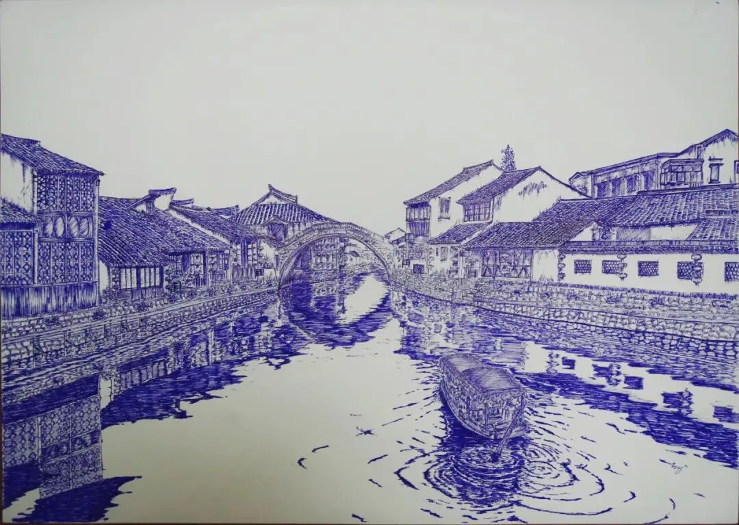 岳莺《青靛甪直》纸本色粉