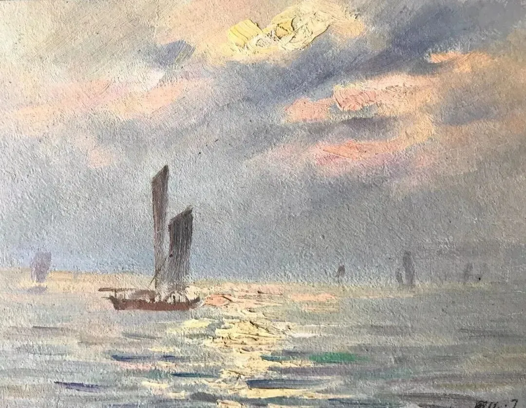 施启伟《太湖晨风》微型油画