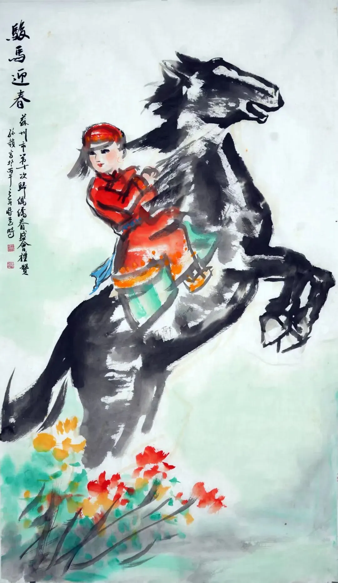 孙韵《骏马迎春》国画
