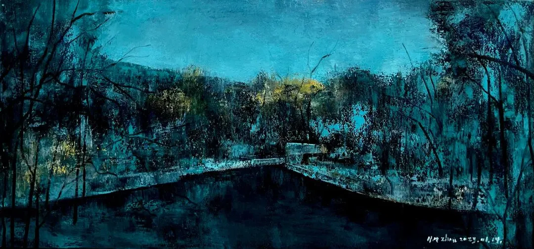 周华明《蓝.湖》布面油画