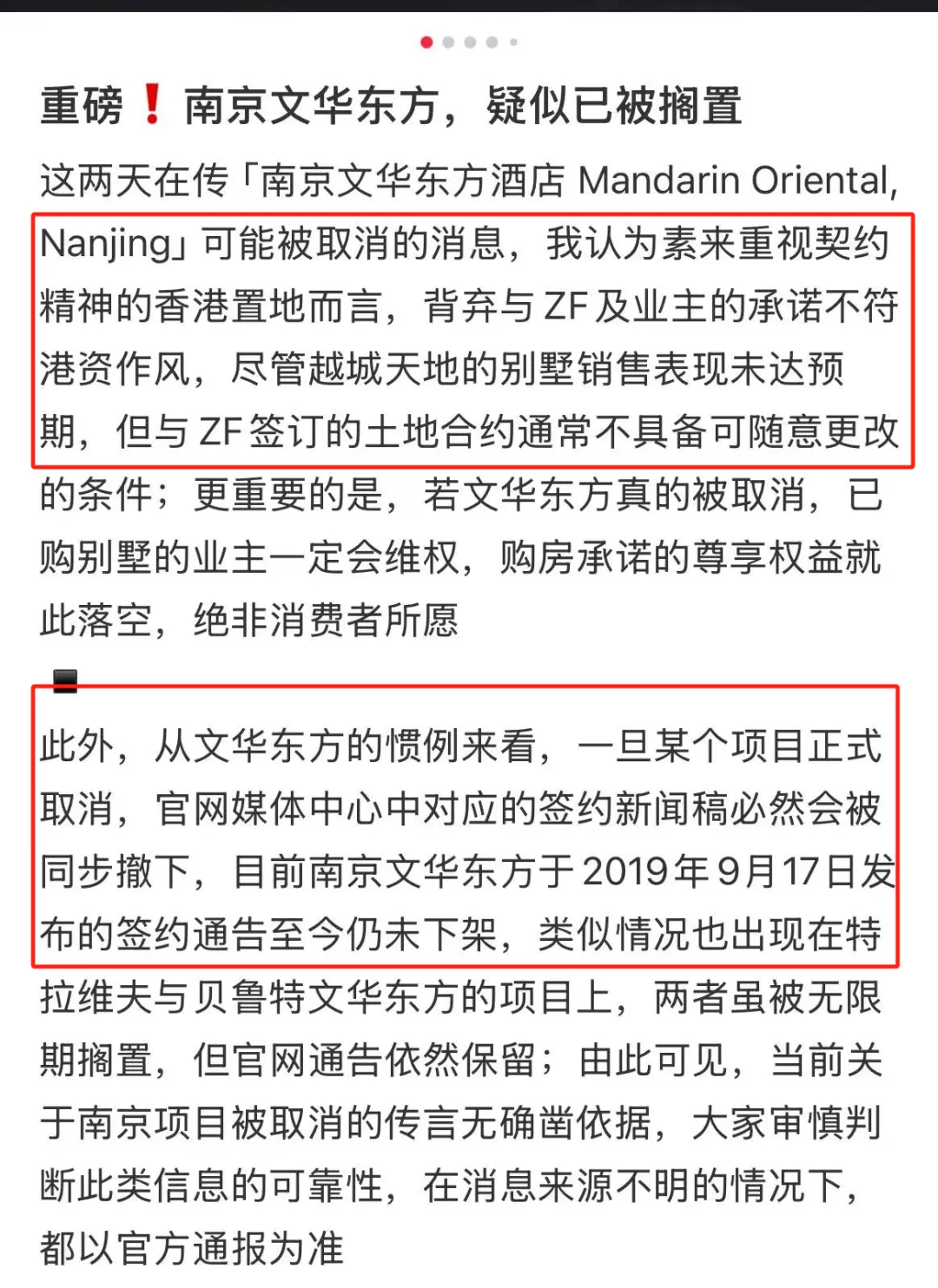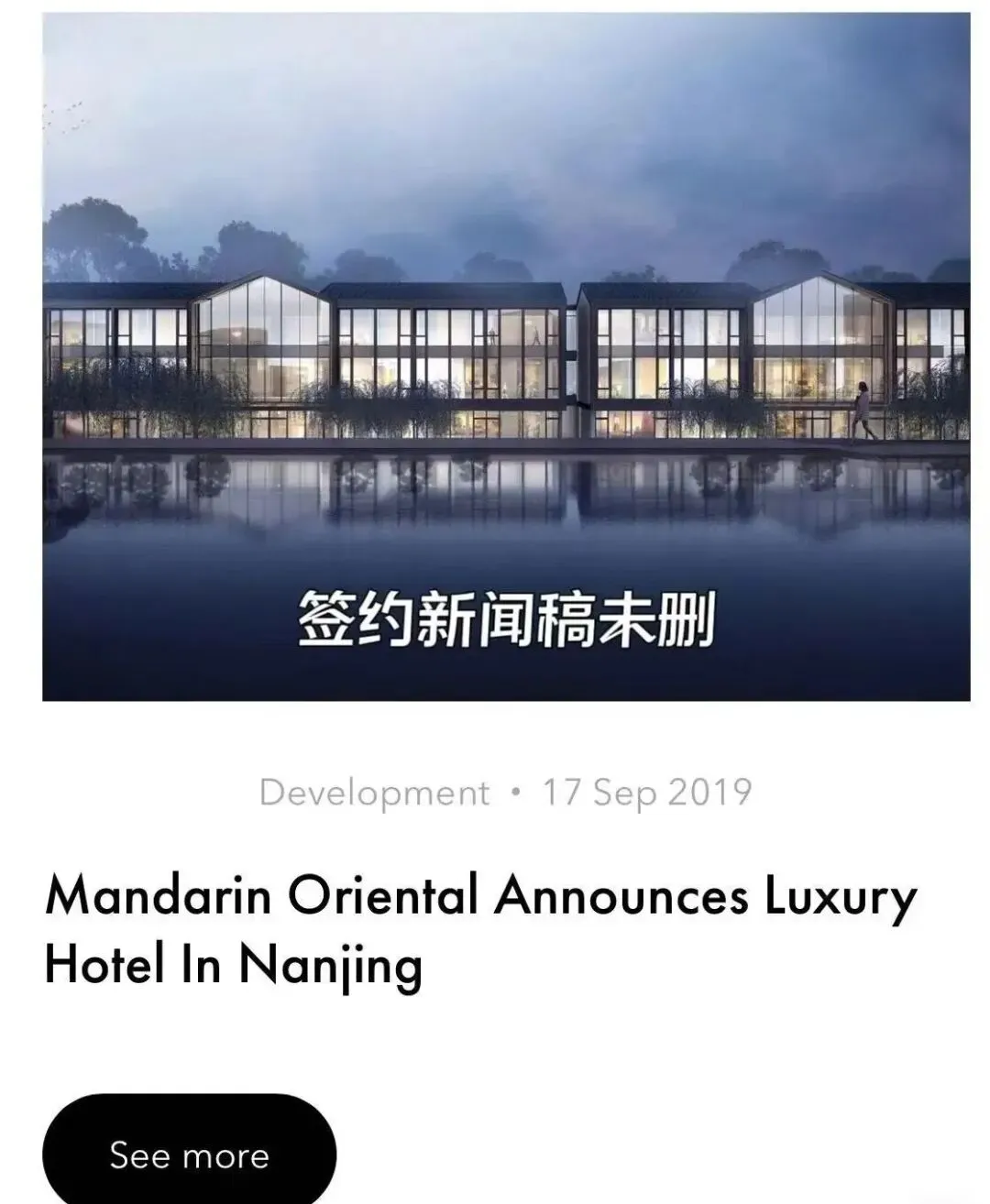 其二,从文华东方酒店的惯例来看,一旦某个项目正式取消,官网媒体中心中对应的签约新闻稿必然会被同步撤下,目前南京文华东方酒店于2019年9月17日发布的签约通告至今仍未下架……