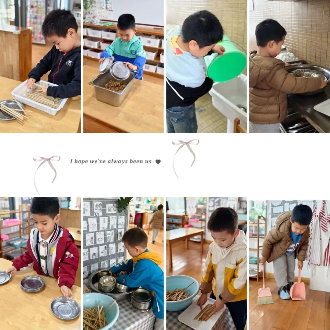 大班的我,学会了扫地擦桌、分发筷子盘子,整理碗……