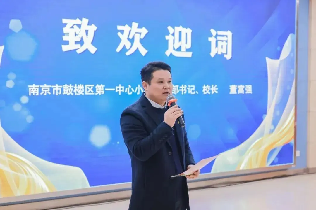 鼓楼区第一中心小学党支部书记、校长董富强致欢迎词,他结合学校德育工作实践,阐述了情感教育在小学班级建设中的核心地位。