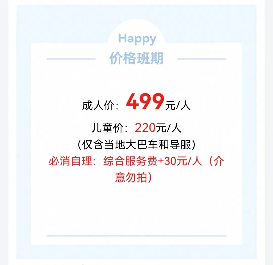 ◆1.2米以下儿童须买儿童价(只含车位、导服),产生其它费用请自理!