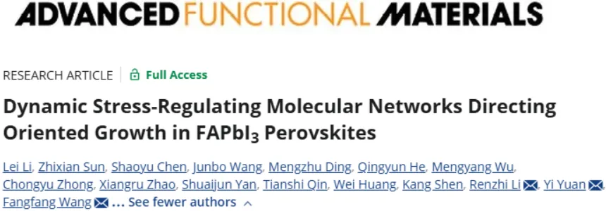 Lei Li et.al Dynamic Stress-Regulating Molecular Networks Directing Oriented Growth in FAPbI3 Perovskites Adv. Functional Mater. 2026