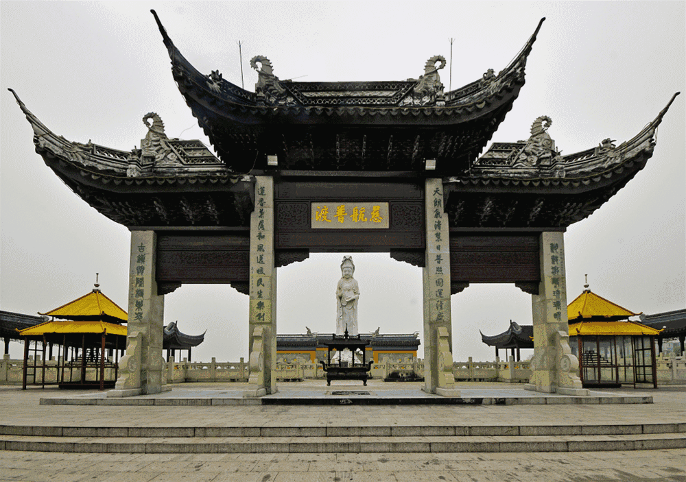小九华寺坐落在风景秀丽的莺脰湖畔,四周环水,只有一座伟岸挺拔的安德桥相连。