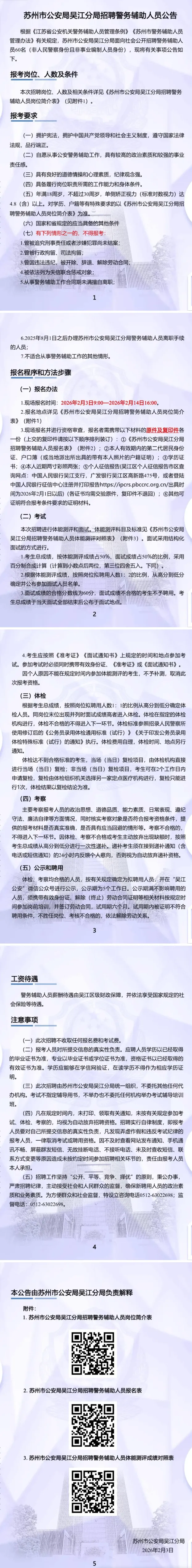 【声明】本公告来源于“吴江公安官微”,由“江苏考聊公务员考试”公众号整理编辑,仅用于学习交流目的,若涉及侵权和错误信息,请扫描上方二维码联系予以更改或删除。