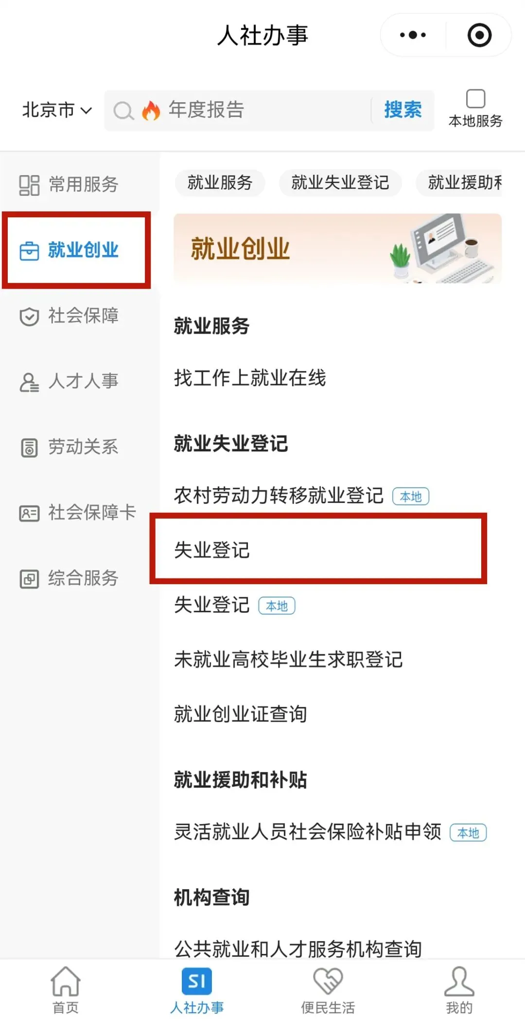 再在边栏处找到“就业创业”板块,点击“失业登记”后,填写相关信息,提交申请,就完成失业登记了。