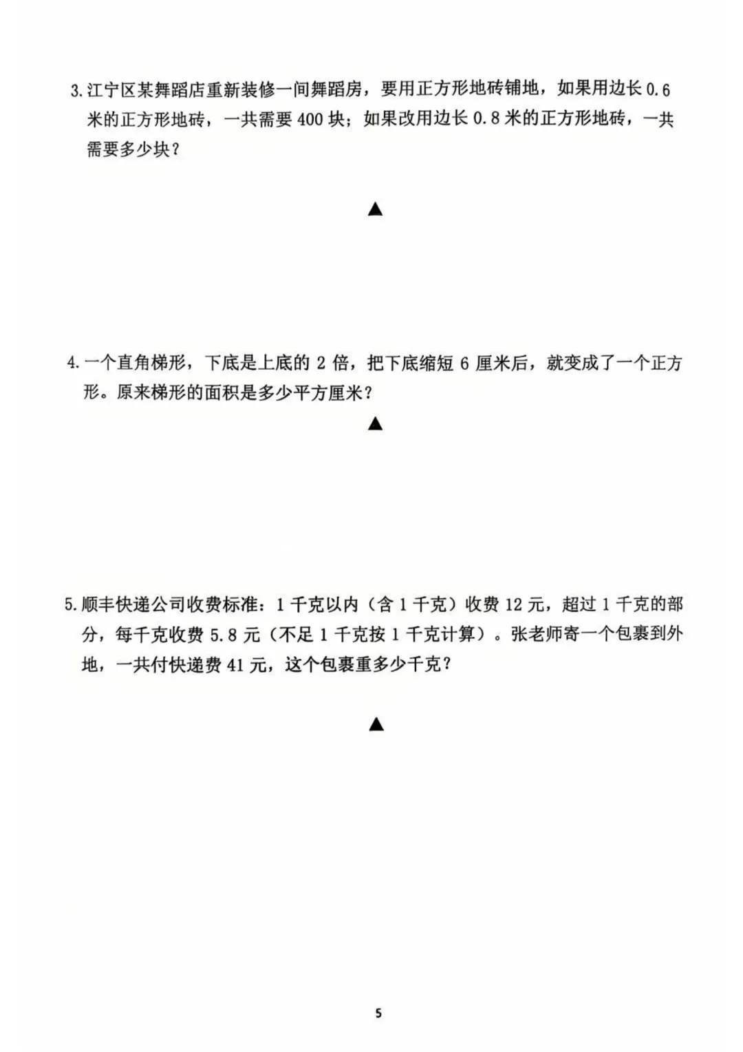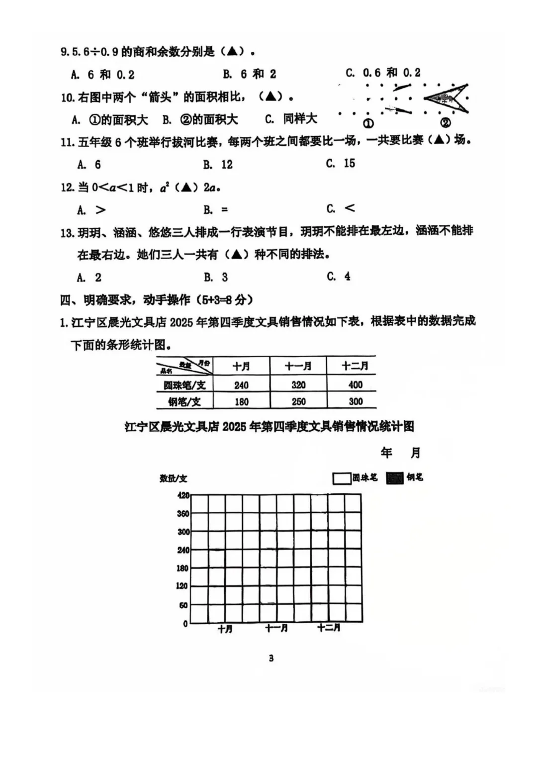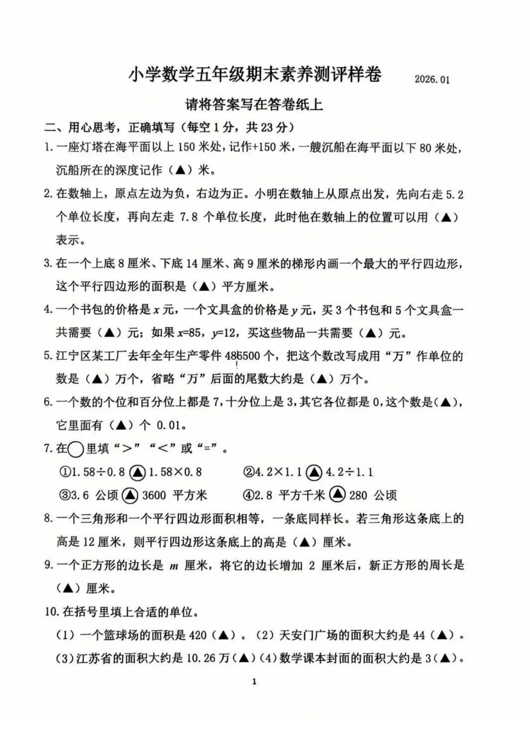 >2025-2026南京小学五年级上学期期末数学真题试卷(2026.1)