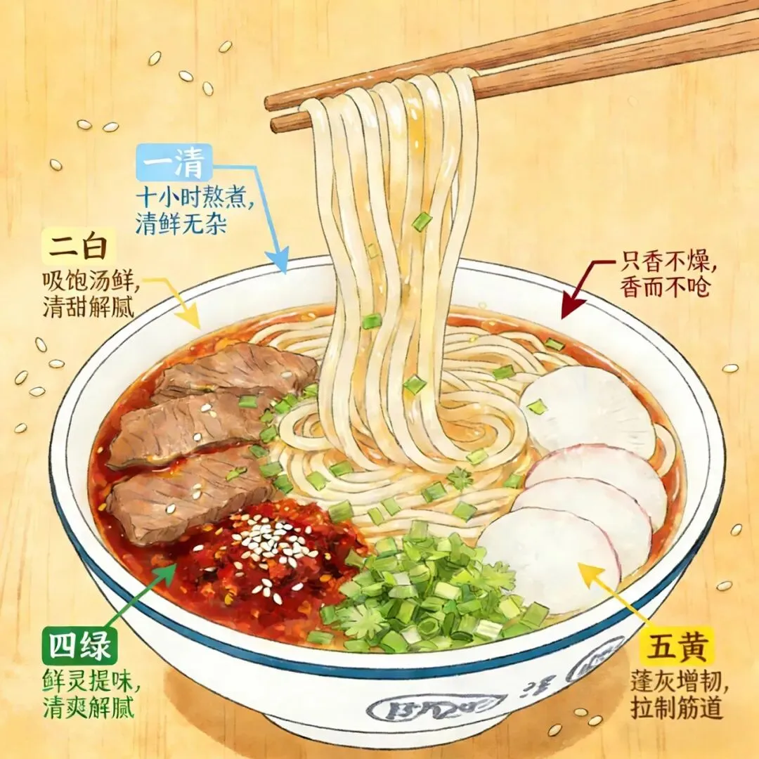 这颗来自两河流域的种子,在河西走廊遇到了 干旱、寒冷与游牧的豪情,便长成了“一清二白三红四绿五黄”的秩序宣言;而在太湖流域,它邂逅了 湿润、富足与士大夫的雅趣,便化身为“宽汤紧面、浇头如诗”的细腻篇章。