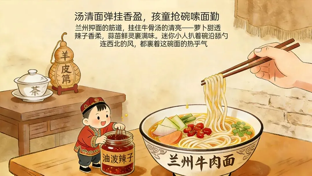 兰州牛肉面:一碗装下黄河的豪情,一口吃透西北的苍劲。