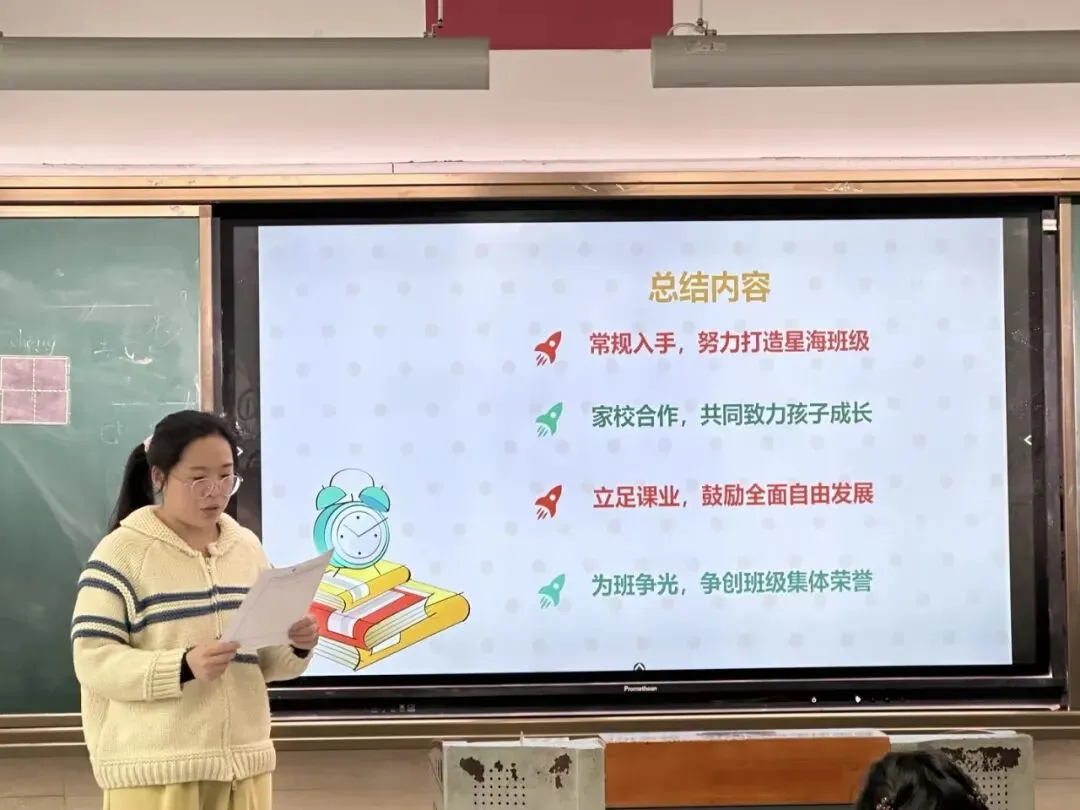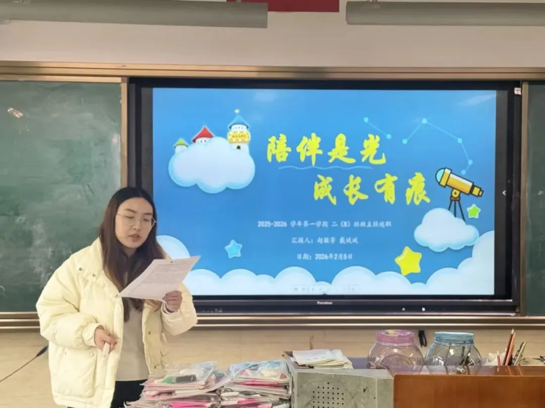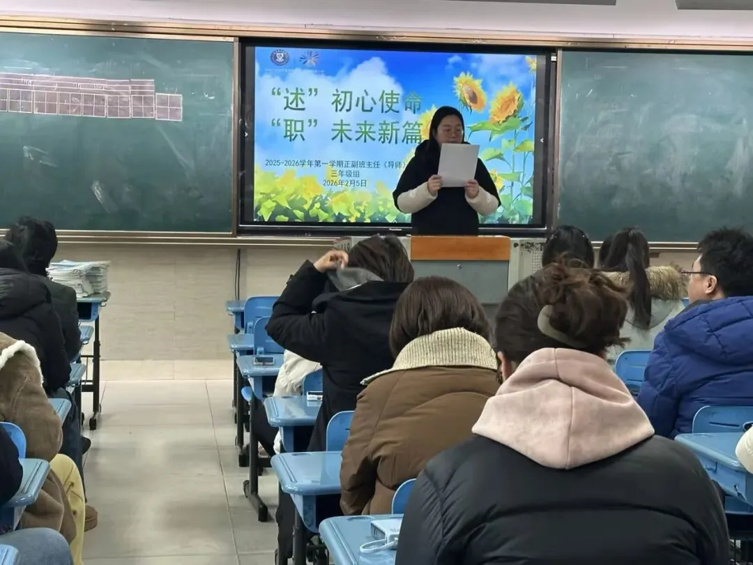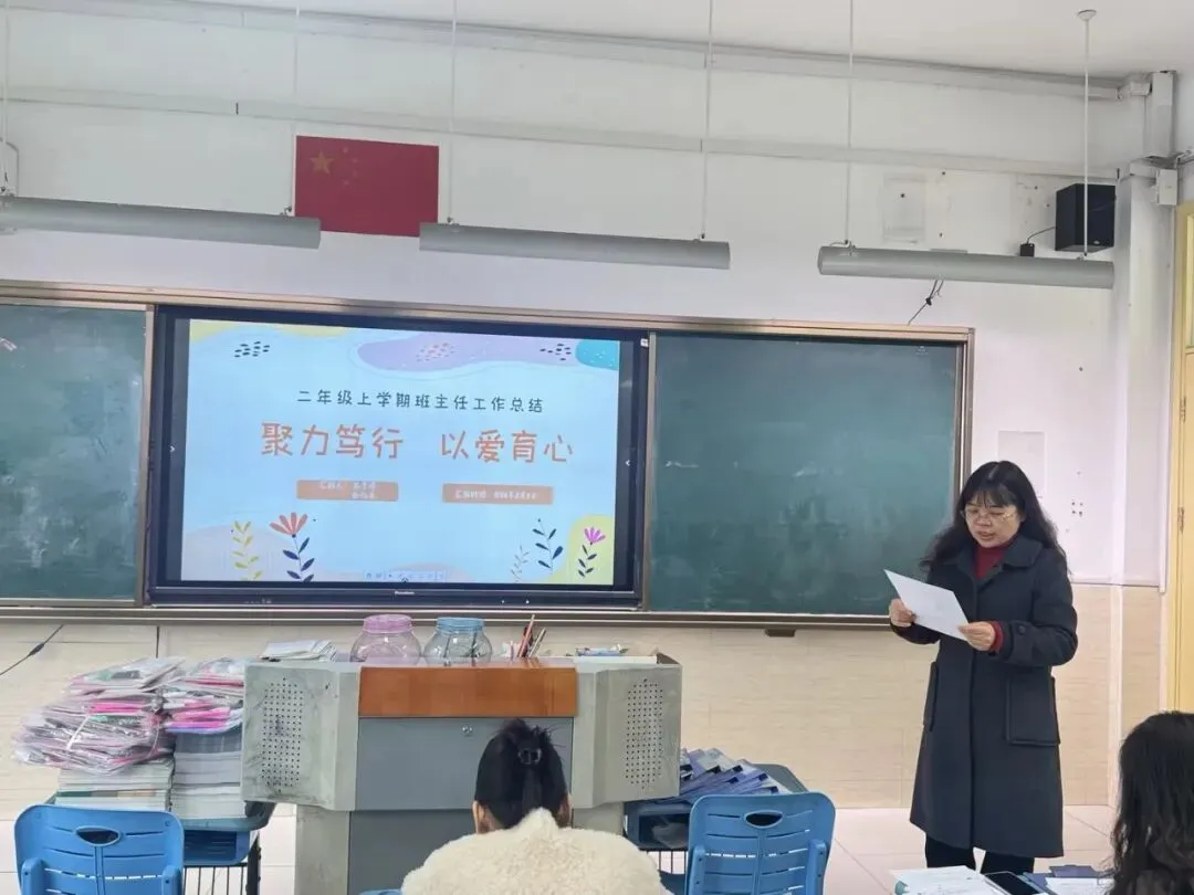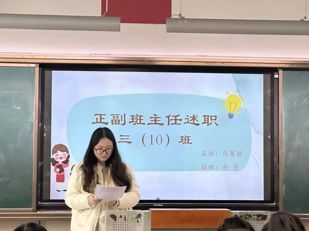随后,各班正副班主任依次进行述职汇报,成为本次活动的核心环节。正班主任们围绕5分钟述职要求,紧扣班级管理实践,从班风学风营造、学生思想道德教育、特殊学生帮扶、家校共育搭建等方面,分享了一学期来的育人故事与班主任管理工作心得。有的老师聚焦班级自主管理体系构建,通过建立“小干部轮岗制”“积分激励制”,培养学生的责任意识与集体荣誉感;有的老师侧重心灵滋养,用耐心与关爱倾听学生心声,化解成长困惑,成为孩子们的良师益友;有的老师则突出家校协同,通过线上线下多渠道沟通,凝聚教育合力,为学生成长保驾护航。