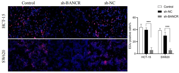 图1:EdU检测敲低BANCR后对CRC细胞增殖能力的影响