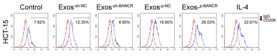 图2:CRC细胞外泌体BANCR对巨噬细胞M2极化标志物表达的影响