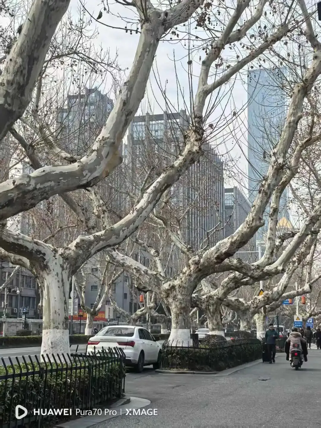除了出乎寻常的高大,我还在后来晚些时候在长江路附近的city walk中,我还发现了另外一种梧桐树,他们有一种变异了似的强壮,像个把蛋白粉当饭吃的肌肉猛男,某个单独的枝丫都比我最惯常见到的主干还要粗壮,就像胳膊比一般人的大腿还粗。从此,南京的梧桐树在我心里成了可以单开一页的存在。