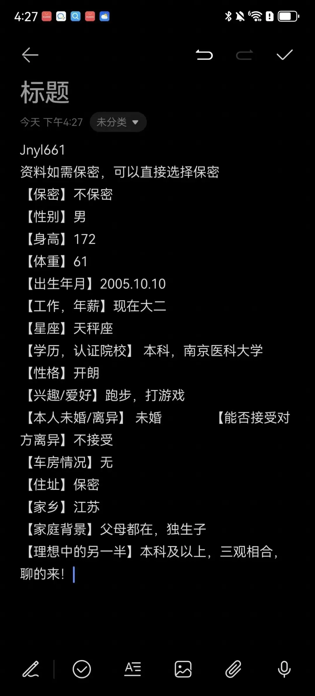 南京相亲丨2001年,女,身高158, 南京邮电大学毕业,自媒体画师工作,年薪10万左右,南京本地人