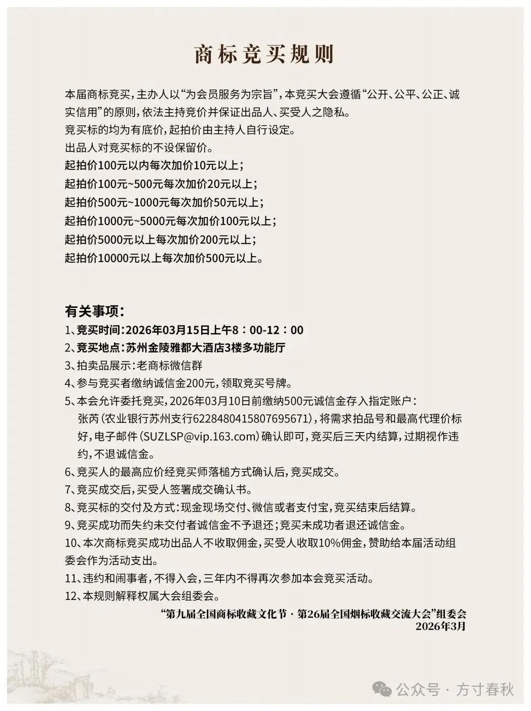 >2026年苏州全国会商标竞买目录苏州组委会苏州组委会方寸春秋2026年1月30日 14:28河南