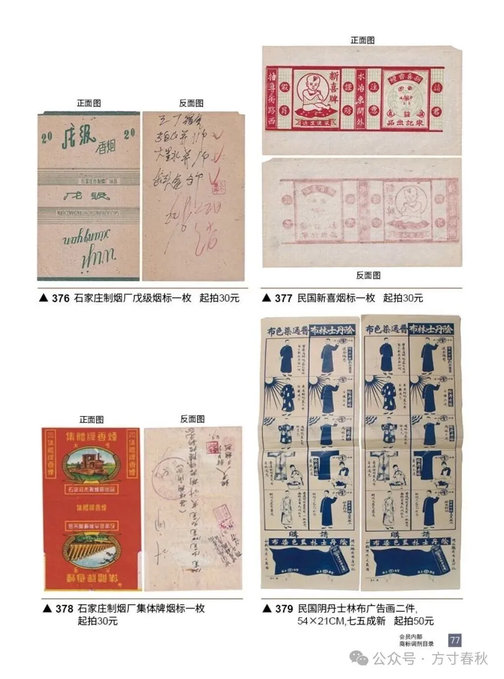 第九届全国商标收藏文化节&第26届全国烟标收藏交流大会商标竞买目录