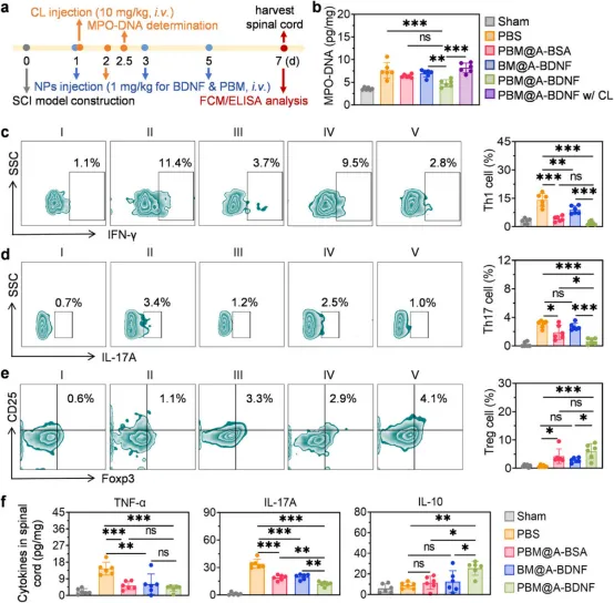 四、科研启示本研究展示了一种“免疫调节 + 神经再生”双效合一的纳米治疗策略,为脊髓损伤及其他中枢神经系统疾病(如脑卒中、神经退行性疾病)提供了新型治疗平台。其仿生膜设计、微环境响应释放机制及NETs清除路径,也为靶向递送与免疫工程研究带来新思路。