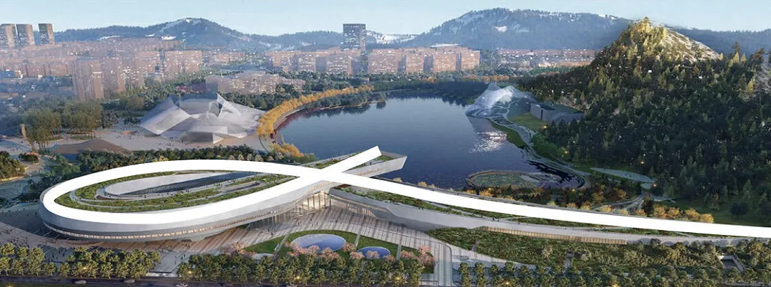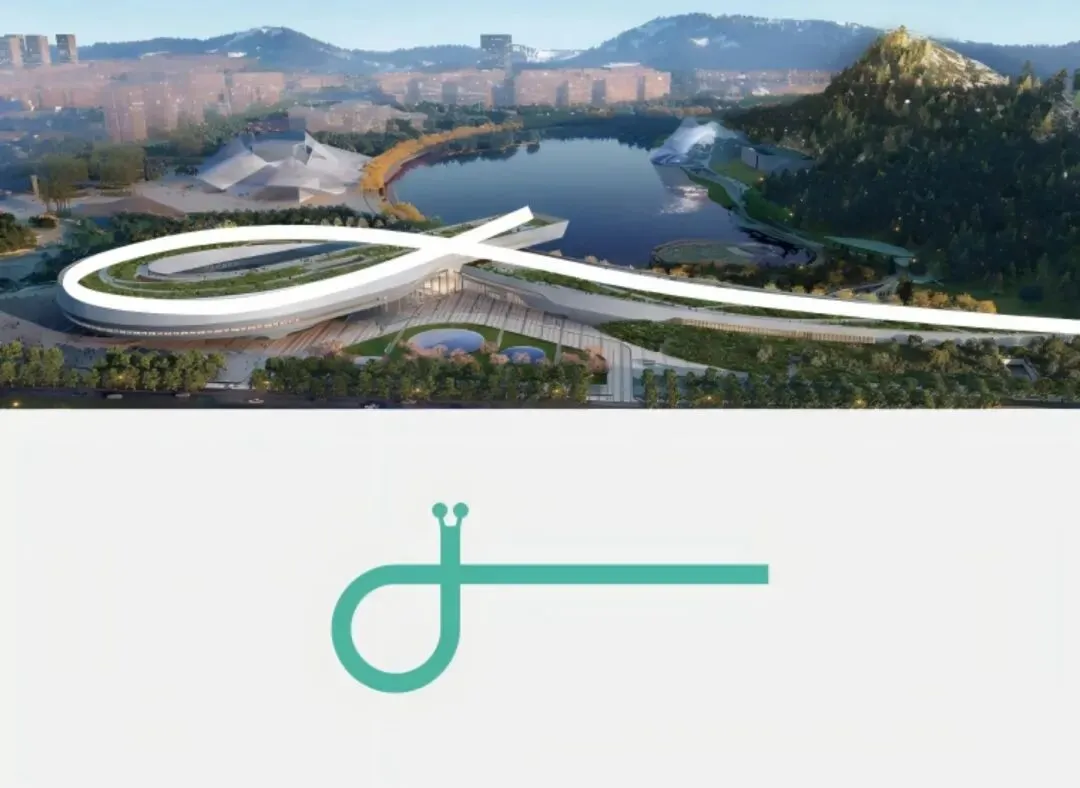LOGO的线条提取自建筑中“玉如意”与“银白飘带”的造型语言,线性、流动、连续,带着自然的节奏。
